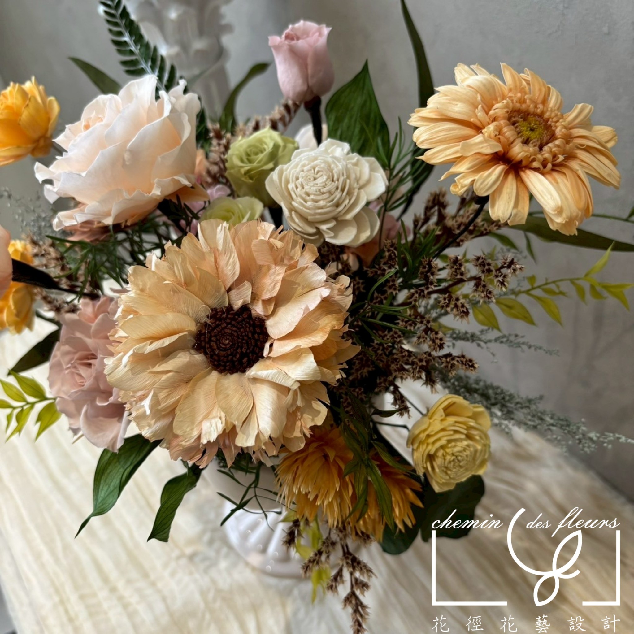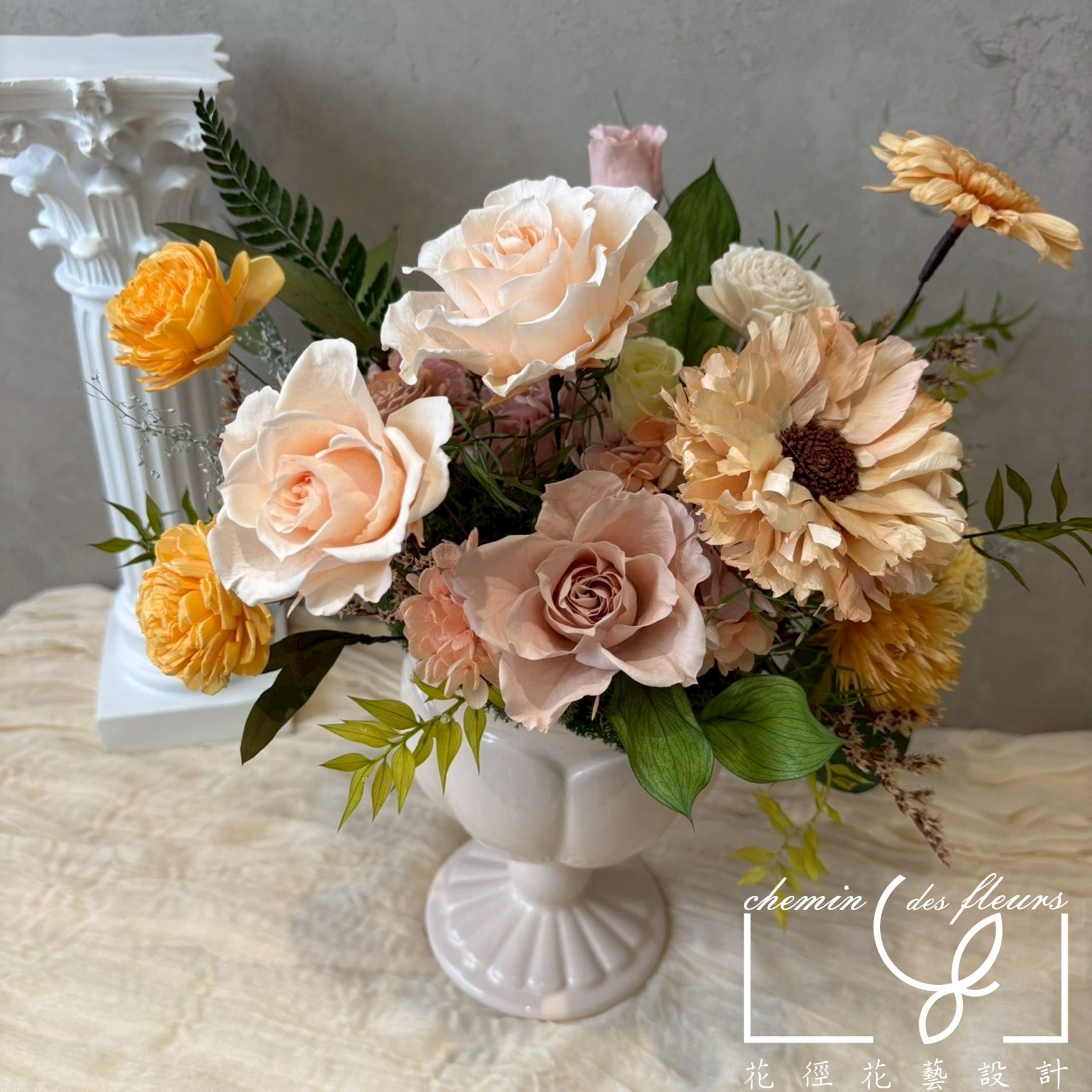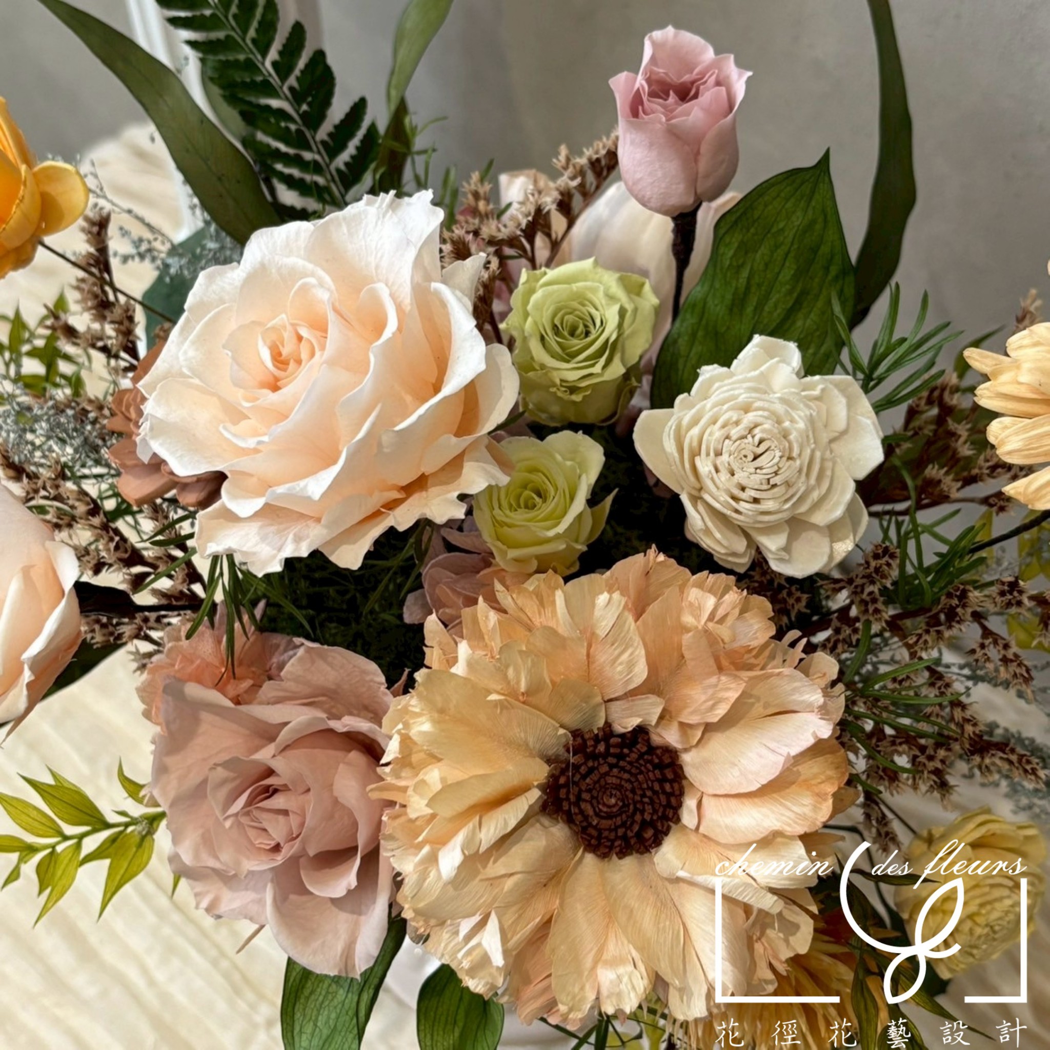 🔹每位花藝師皆有自己的風格,若提供非本店之作品照,僅作為確認款式、相近顏色或其他特殊需求使用。色系與風格只能盡可能相似,恕無法仿造他人商品並保證一模一樣,請尊重所有花藝師的創作。