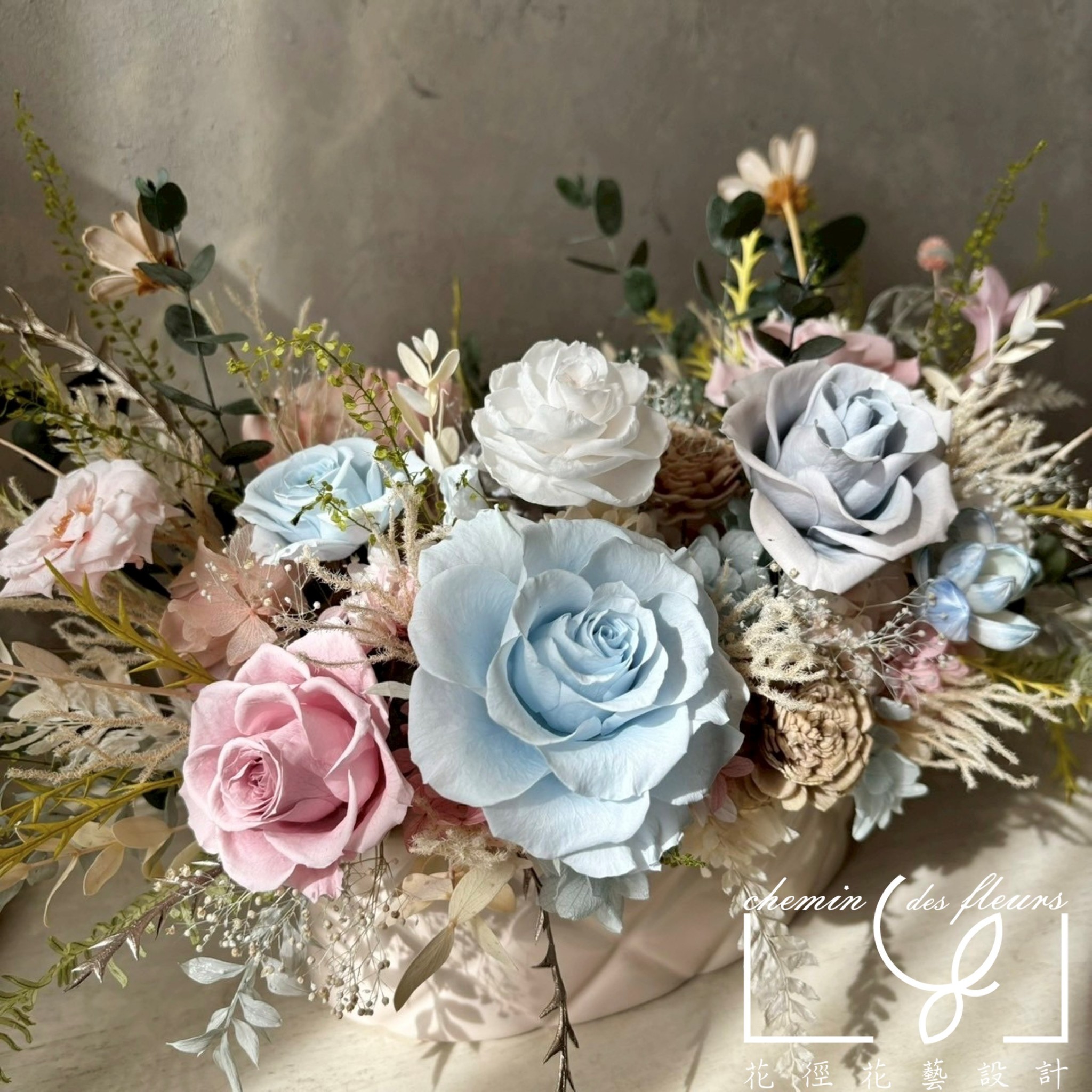 🔹每位花藝師皆有自己的風格,若提供非本店之作品照,僅作為確認款式、相近顏色或其他特殊需求使用。色系與風格只能盡可能相似,恕無法仿造他人商品並保證一模一樣,請尊重所有花藝師的創作。