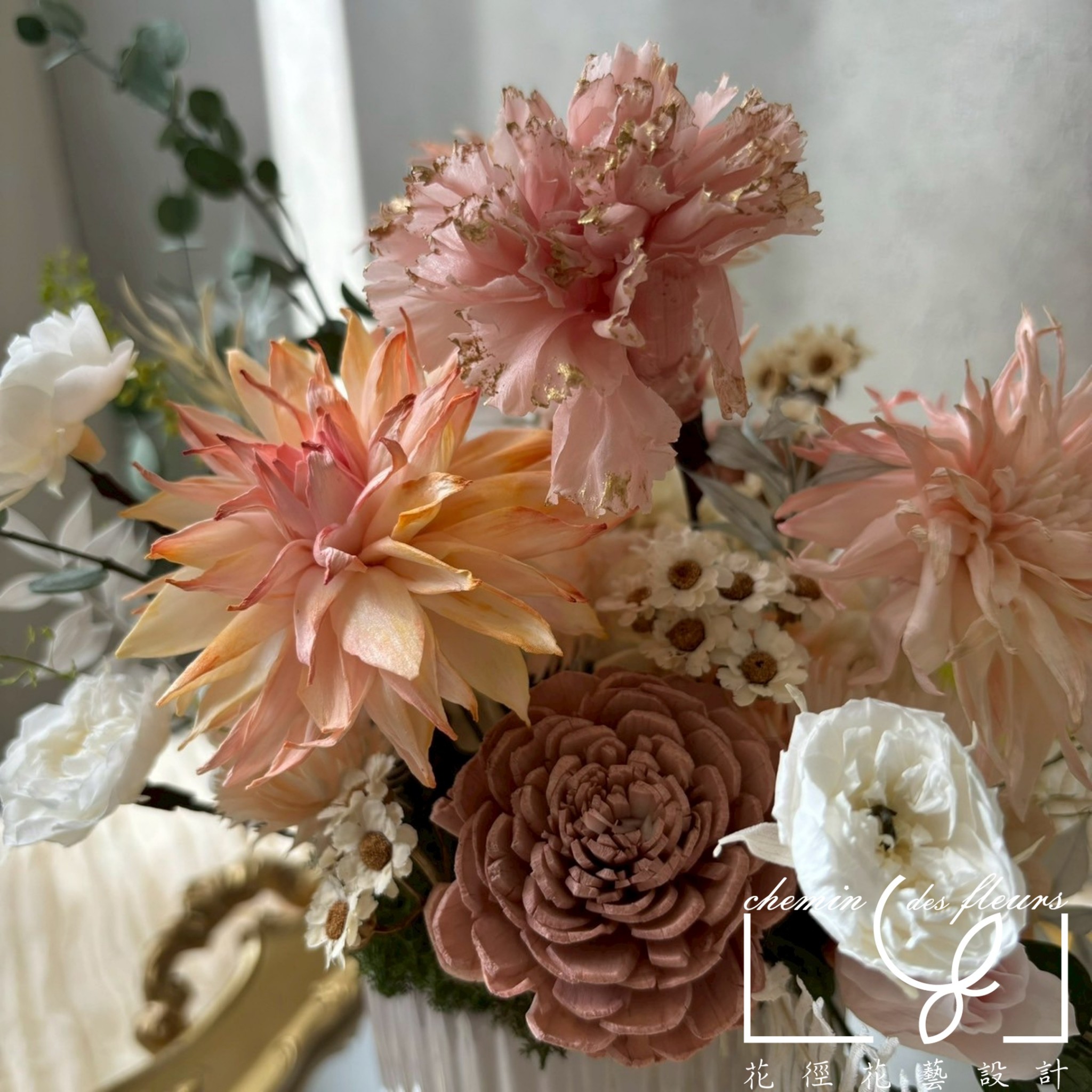 🔹每位花藝師皆有自己的風格,若提供非本店之作品照,僅作為確認款式、相近顏色或其他特殊需求使用。色系與風格只能盡可能相似,恕無法仿造他人商品並保證一模一樣,請尊重所有花藝師的創作。