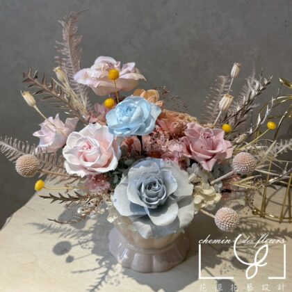 🔹花材、配飾、花器、包裝、緞帶及所需各項原材料等皆可能因季節或實際庫存而有所改動,如遇缺貨或品質欠佳時,花藝師會優先以風格相近材料做替換,將不另行通知。